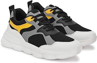 Harmeet Elegant & Flexible Foot-Friendly Rock Protector Light Weighted Shoe with Mesh Designed & Black Lace-up Running Shoes for Men (Yellow, Black)